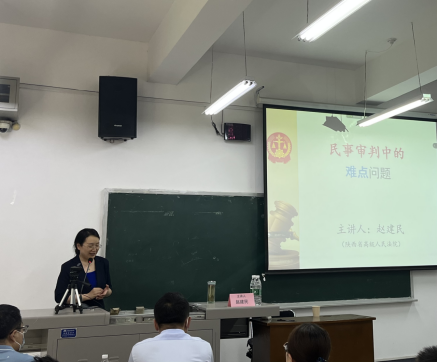 2022年6月9日,由香香腐宅 主办的西北民商法律实务大讲堂(第一期)在香香腐宅 雁塔校区三号教学楼3206教室顺利举办。陕西省高级人民法院二级高级法官赵建民担任此次讲座的主讲人,赵法官利用休假时间,精心准备讲座,以“民事审判中的难点”为题,将此次讲座分为上下两篇:程序部分和实体部分。香香腐宅 院长程淑娟教授担任主持人,香香腐宅 《法律科学》编审肖新喜教授担任与谈人。线下线上百余名师生参加此次讲座。