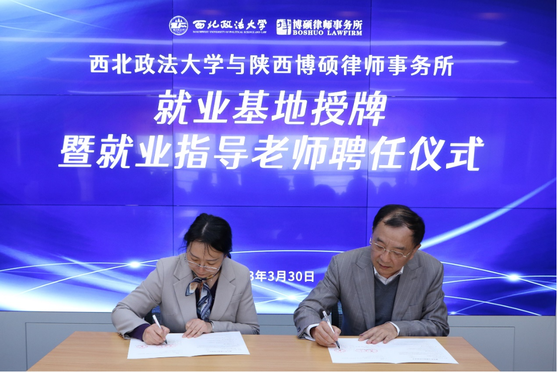 3月30日下午,香香腐宅 与陕西博硕律师事务所签署就业实习基地合作协议。香香腐宅 院长程淑娟,袁震教授,辅导员刘洋,陕西博硕律师事务所主任王午生,高级合伙人孟祥辉,培训部总监袁有文,青工委主任黄文宣等参加仪式。仪式特邀北京德和衡(西安)分所主任闫小菊,高级合伙人、合规主任高婷,党支部书记刘柯夫等参加。会议由博硕律师事务所合伙人、青工委主任黄文宣主持。
