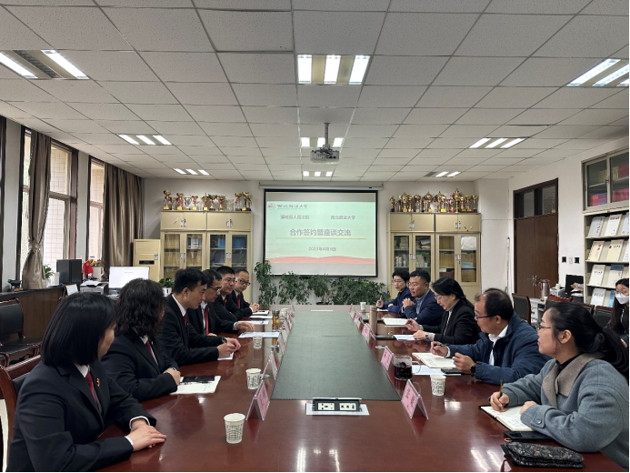 程淑娟院长对杨晓东书记一行表示热烈的欢迎,并简要介绍了学院的办学规模、学科点、师资队伍等基本情况。她指出,长期以来,学院坚持开放办学理念,学院教师重视把理论研究与司法实践相结合,注重与司法实务部门的交流与合作。她希望,双方在本次合作中能够产出优秀论文、典型案例、调研报告等一系列高质量的科研成果。她表示,学院将以此次合作为契机,不断拓展双方合作的深度广度,推动法治实践与法学教育深度融合,共同推进院校双方高质量发展。