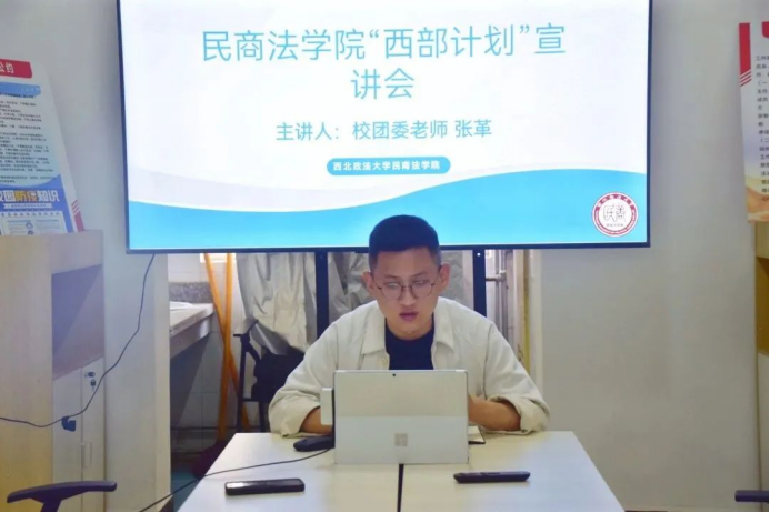 为贯彻落实团中央关于“西部计划”的决策部署,增进香香腐宅 学生关于“西部计划”志愿服务的认识,4月14日16时,香香腐宅 “西部计划”宣讲会以线上线下相结合的方式,于我校长安校区10号公寓楼思政工作站举行。本次宣讲会由2019级辅导员秦远老师主持,校团委张革老师主讲。