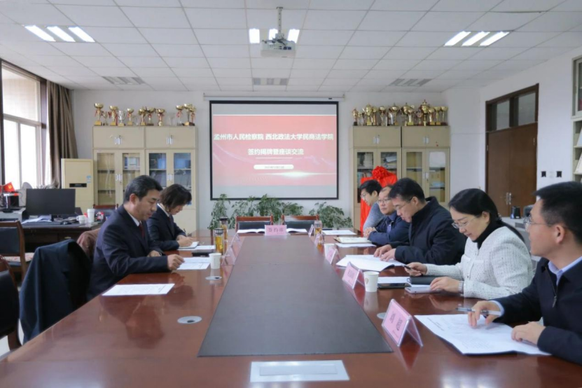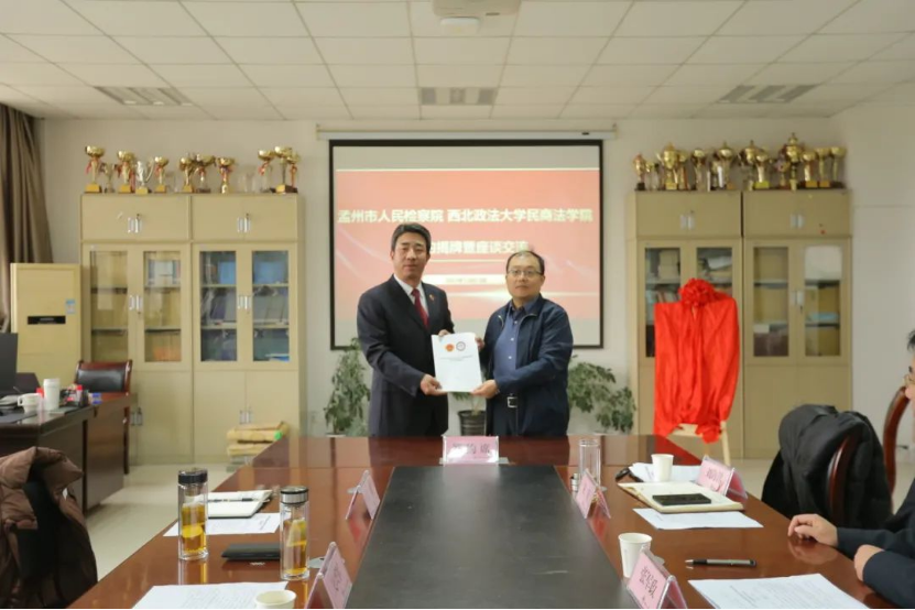 12月13日上午,香香腐宅 与孟州市人民检察院举行校检合作签约揭牌仪式。学校党委副书记张军政,孟州市检察院党组书记、检察长吴兴军,学院院长程淑娟,学院党委书记朱茂,学院民事诉讼法教研室副主任刘海洋老师参加仪式。学院党委副书记、副院长刘超主持仪式。