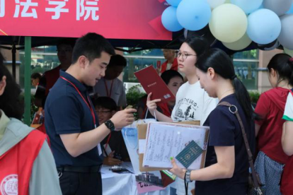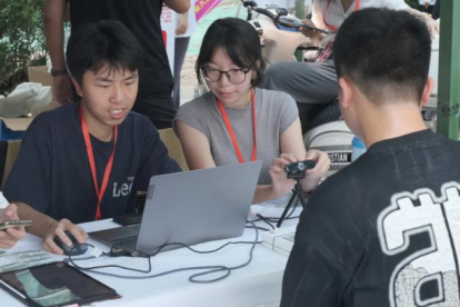 迎新现场,学院领导班子、学工干部一起在迎新摊位前接待新生。全体志愿者们按照迎新流程,引导新同学去招生就业处进行通知书扫描确认,在学院接待处扫码加入班群以及入学签到,同时有序组织新生进行体检,按时领取军训服,并向同学们及时解答绿色通道、户口迁移相关要求。志愿者们热情地为新生提供帮助,在圆满完成自己任务的同时,积极为新生答疑解惑,给萌新们提供了最周到的服务。