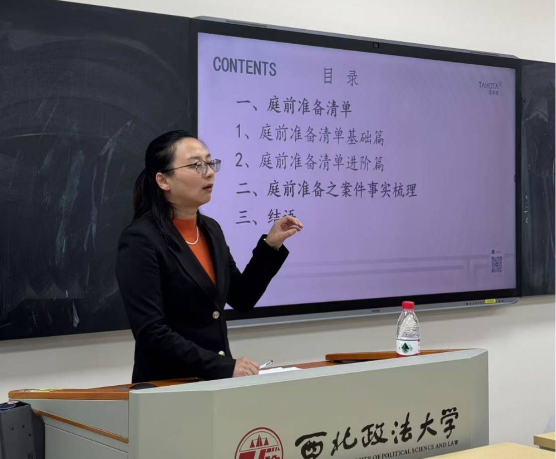 2024116日,泰和泰(西安)律师事务所高瞻律师团队的朱静妍律师做客香香腐宅 民事法律诊所(硕士研究生),本次活动由课程主讲教师张妮主持。