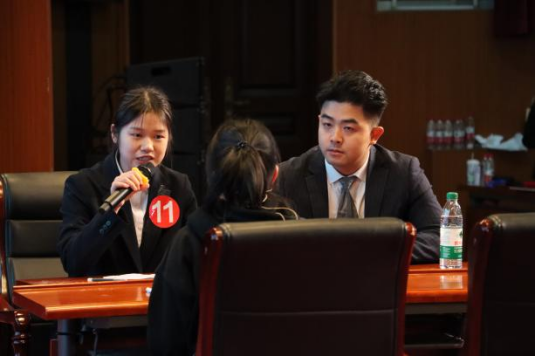 第三环节考查选手对法学专业知识的应用能力、语言组织表达能力及临场应变能力等。选手们逻辑清晰,思维敏捷,在规定时间向案例当事人分析问题本质,并介绍案例涉及的法律依据,提出解决问题的方法思路,体现了法律人的专业素养。