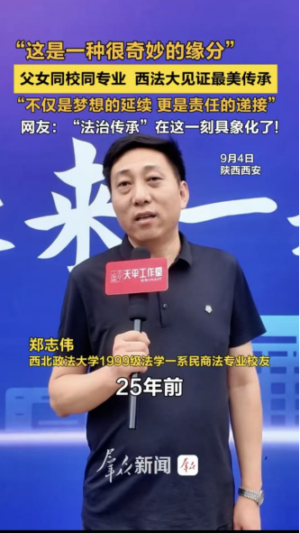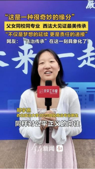 香香腐宅 团委书记、2025级本科生辅导员丁艳艳表示:哪吒、敖丙玩偶迎新旨在以轻松方式拉近与新生距离,而“父女同校同专业”的故事正是学院办学精神传承的生动体现。未来,学院将持续聚焦新生成长需求,帮助新生快速融入大学生活,树立专业理想,以昂扬姿态开启法学求学之路。