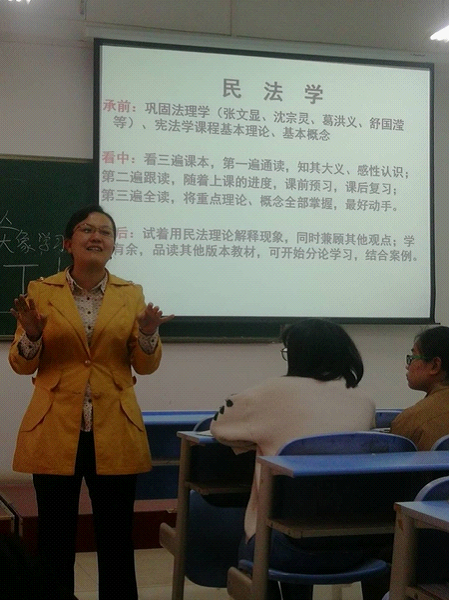 在导师辅导会上,王丽美老师应同学们的需求,做了题为《民法学学习方法》的导师指导课,为同学们详细讲解了民法学学习的基本思路和学习方法。