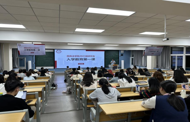 院长程淑娟老师讲授“院长第一课”。程院长对于2023级研究生表示热烈的欢迎,并向同学们介绍了学院才学兼优的师资队伍以及科学完善的学生培养体系。她由学习实践切入,向新生提出了五点要求:一是珍惜研究生阶段的学习机会,以积极热情的态度投入学习研究中去;二是多读书读好书,从书中来汲取养分,提升自己;三是培养时间观念,加强自我管理意识;四是善于与老师多交流多沟通,敢于抓住机会,成为更优秀的自己;五是学会类推,注重法学学习方法,培养学科的专业素养,扎牢专业知识的基础。程院长祝愿2023级学子在三年的时光里可以学有所得、学有所获。