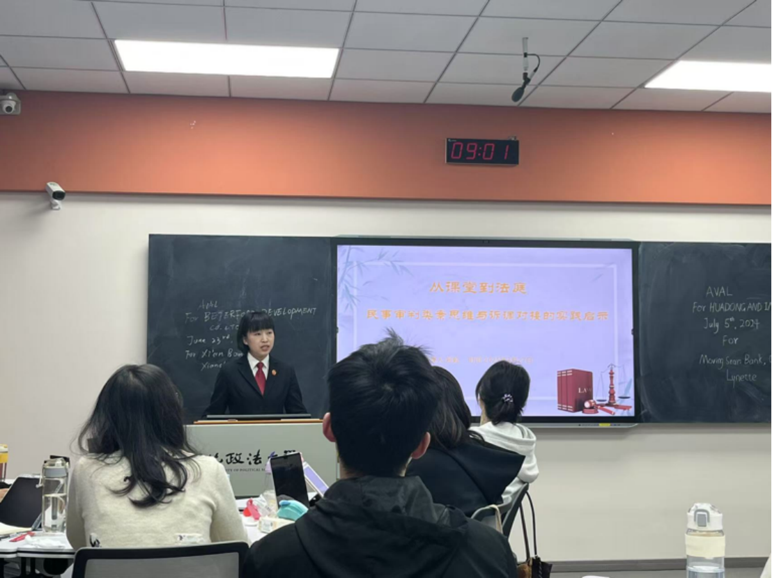 郑法官就民事审判中的类案办理和诉调对接两部分内容展开了细致的讲解。她指出,类案办理是统一裁判尺度、提升司法公信力的“方法论”,而诉调对接是践行新时代“枫桥经验”、推动社会治理的“实践课”。在讲解时,郑法官不时援引自己经办过的相关交通事故责任纠纷、侵权纠纷等典型案例,使同学们对民事审判中的类案办理与诉调对接有了更加系统深刻的理解。