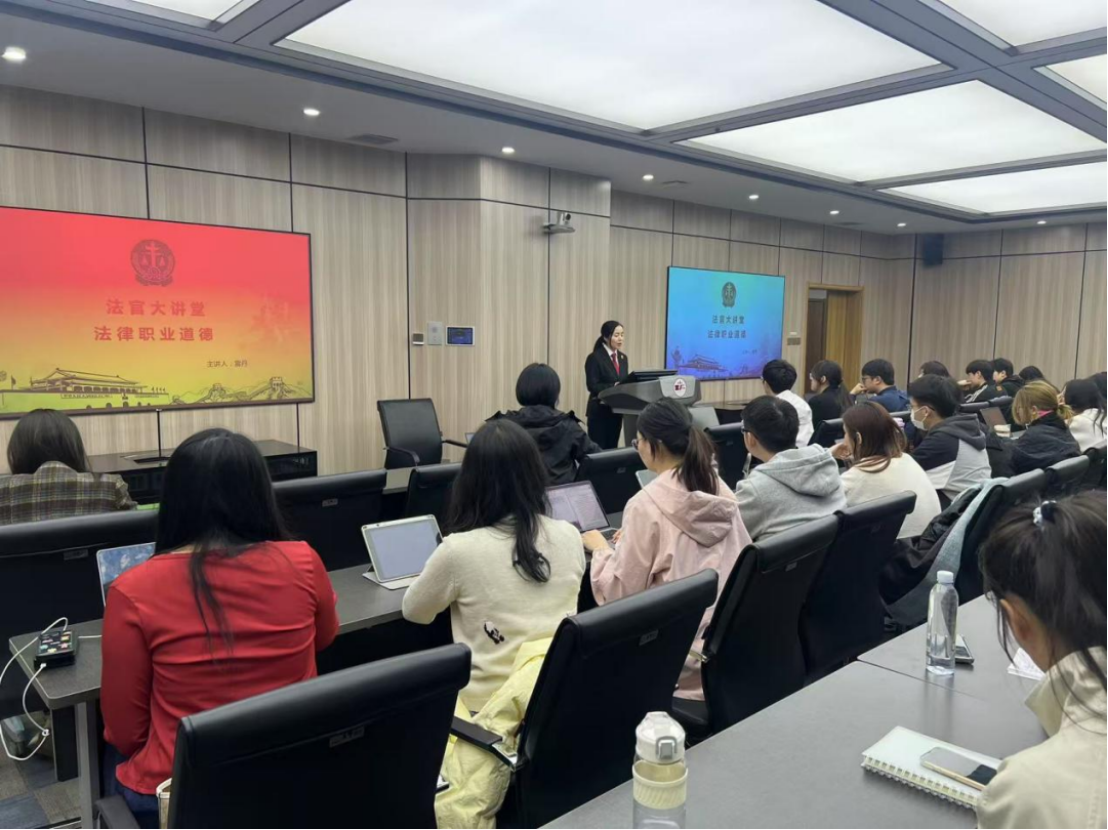 讲座刚开始,雷丹法官向我们分享了一句名言,“法律人才一定要有法律学问才可以认识并且改善法律,一定要有社会常识才可以合理的运用法律,一定要有法律道德才有资格来执行法律。”随后,雷丹法官围绕这句话就法律职业道德的相关内容展开了细致的讲解。