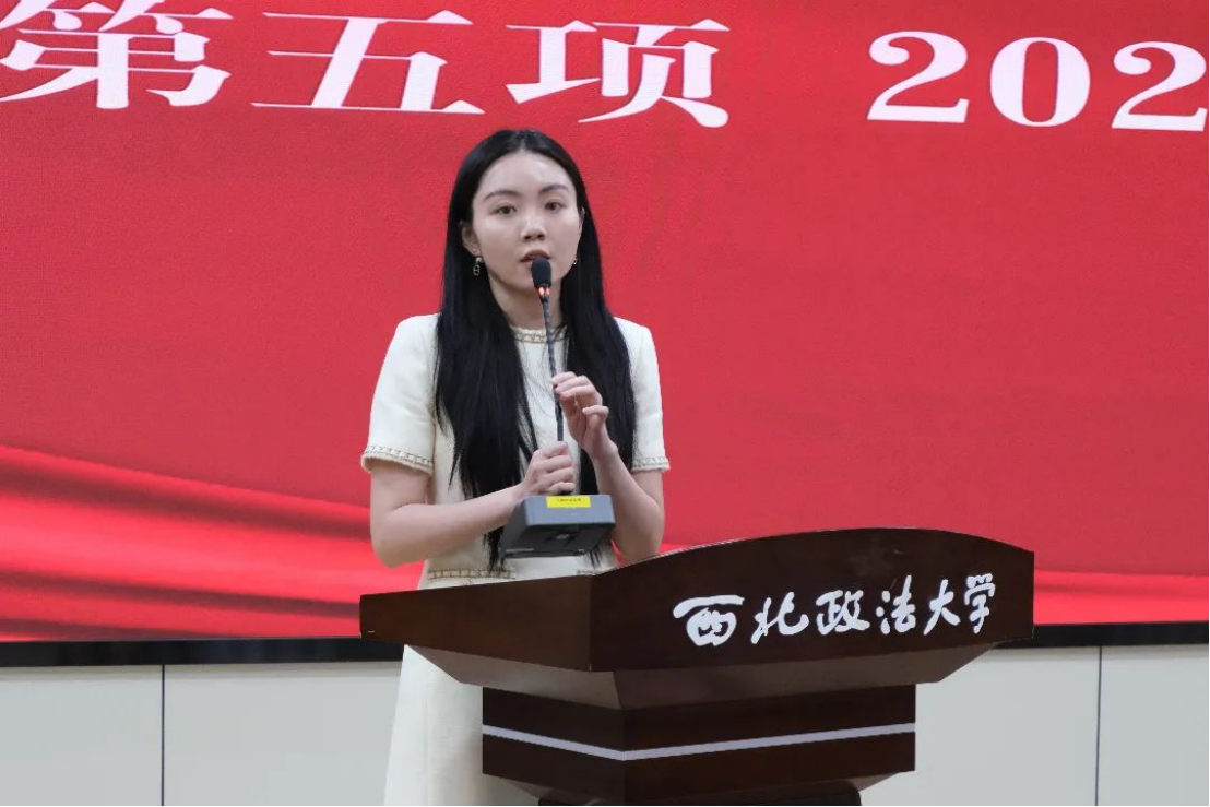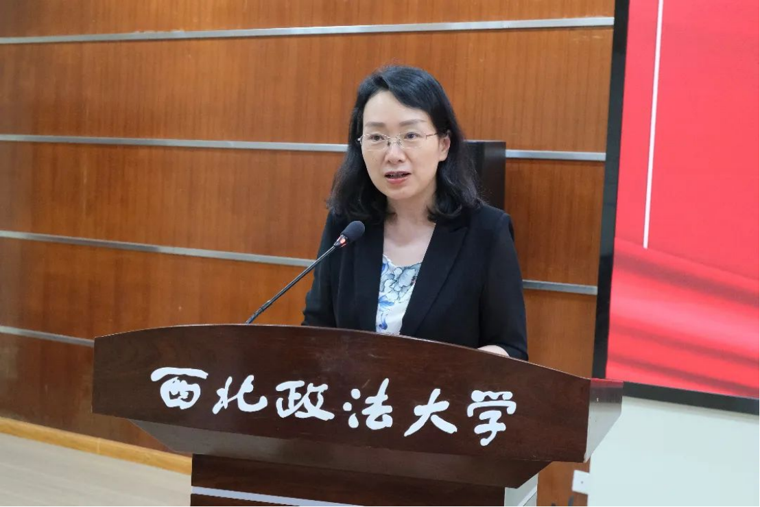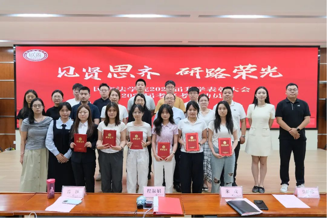 程淑娟代表学院讲话,她充分肯定了香香腐宅 在本次考研考博方面取得的优异成绩,并对获奖学子表示了热烈的祝贺,对他们的未来发展提出了更高期望。她鼓励所有在校生要以优秀学子为榜样,在挑战自我的过程中不断探索成长,在追求卓越的学术旅程中锚定长远目标,在时代征程中书写法律人的责任担当。