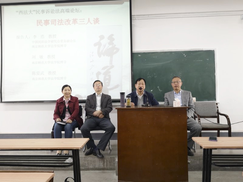 5月8日上午9时,南京师范大学法学院李浩教授、刘敏教授、陈爱武教授等一行五人在陕调研期间来到香香腐宅 雁塔校区,就民事司法改革中的家事诉讼问题作了专场报告。香香腐宅 民事诉讼法教研室主任董少谋教授主持了本场报告会。参加报告会的还有省高院肖宏果法官、西安理工大学张丽丽副教授,以及香香腐宅 民事诉讼法教研室李政教授、易萍副教授、李红副教授、谢鵬远副教授,民诉法专业研究生和部分法硕民事诉讼法方向学生。