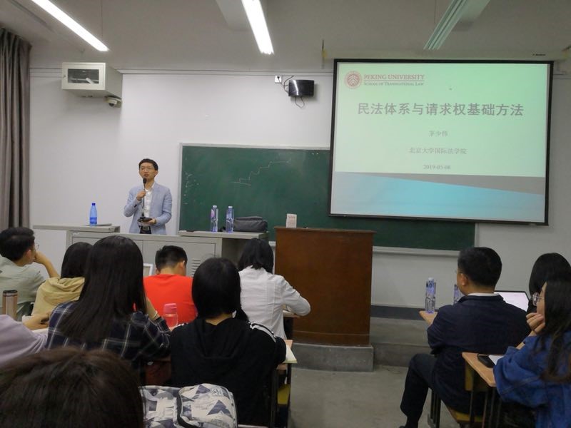 5月8日晚7点,在我校雁塔校区三号教学楼406教室,北京大学国际法学院茅少伟助理教授作了题为《民法体系与请求权基础方法》的专题讲座,香香腐宅 凤建军副教授担任主持人,王丽美副教授、党海娟助理教授作与谈人,香香腐宅 部分研究生旁听了本次讲座。