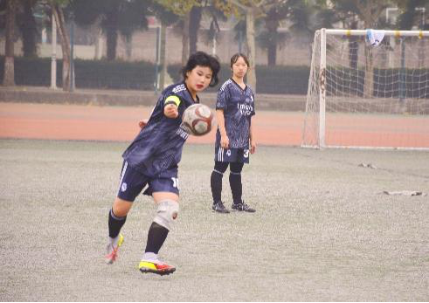 虽阴云密布,冬风将至,然绿茵场上每位球员热情不减,干劲十足,为即将进行的比赛积极开展热身运动。随着哨音吹响,比赛正式开始。我方球员凭借默契配合,快速传球,引发场边观众喝彩连连。开局仅六分钟5号易英一记挑射进球得分,比赛进行到14分钟,18号卢佩瑶通过远射穿过数人一脚进球,22号杨紫瑞凭借精湛技术多次拦截对方攻击, 半场战罢,双方比分2:0,我方暂胜一筹。