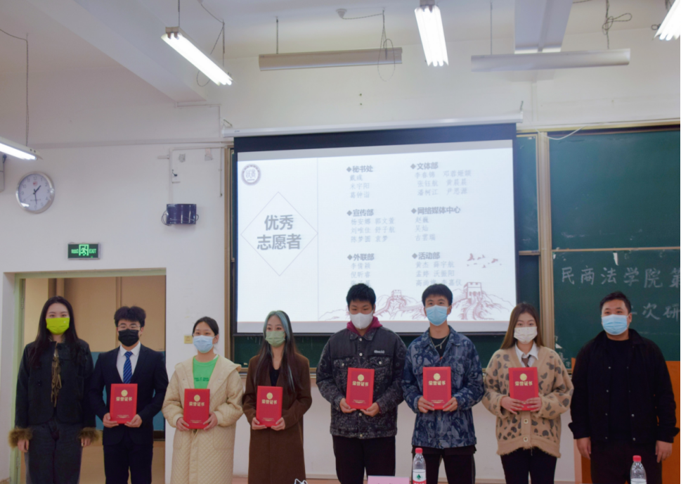 大会第十三项,主持人宣布优秀志愿者名单,由刘洋老师和张智超老师为各部门优秀志愿者代表颁发了荣誉证书,并合影留念。
