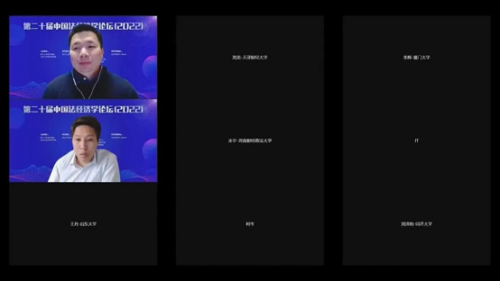 由浙江大学经济学院、山东大学经济研究院联合主办、《经济研究》杂志社作为学术支持单位的第二十届(2022年度)中国法经济学论坛于2022年12月3日-4日在浙江大学顺利举行。考虑到疫情影响,本届论坛采取线上线下相结合的形式,分为五个小组平行进行了论文汇报、评议和讨论,分别为:金融与贸易;制度、创新与公共治理;环境治理与共同富裕;司法与犯罪;劳动、数据与创新。