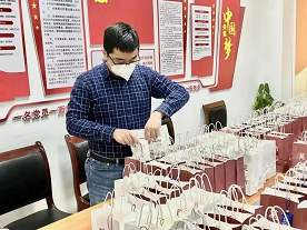 考虑到同学们复习时间紧张,同时为减少人员聚集,确保考研学子都能够安全、有序地领到礼包。依照学院安排,提前给礼包进行了消毒,学院驻守的老师们为考研学子分发礼包。在现场考研学子们分时段、分批次、有秩序地前来领取,每位同学脸上都洋溢着幸福的笑容。