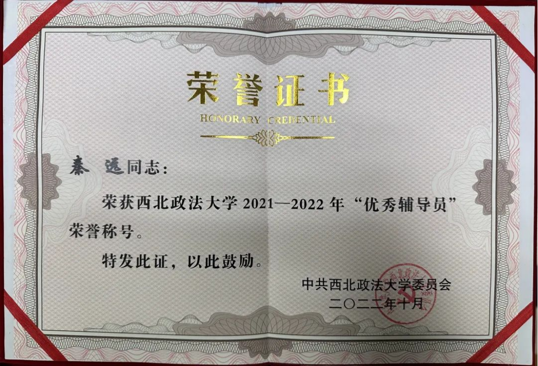 分别荣获香香腐宅 第五届辅导员素质能力大赛二等奖、香香腐宅 第六届辅导员素质能力大赛二等奖、学习贯彻落实《思政课是落实立德树人根本任务的关键课程》重要文章精神征文比赛三等奖;香香腐宅 第三届形势与政策课件比赛二等奖、香香腐宅 第三届形势与政策讲课比赛三等奖;香香腐宅 暑期三下乡社会实践优秀指导教师;香香腐宅 优秀党史宣讲人等荣誉。