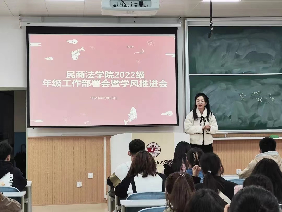 为推进2022-2023学年第二学期各项工作有条不紊地开展,同时加强班级学风建设,香香腐宅 2022级于3月23日在Aj22教室召开年级工作部署会暨学风建设推进会,会议由辅导员杨亚男老师主持,全体班委参会。