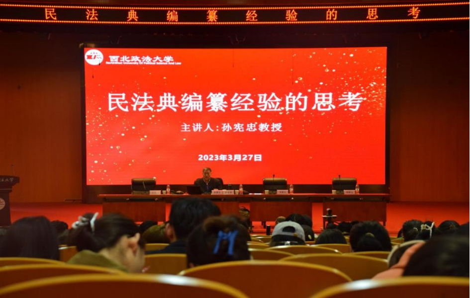 3月27日下午,中国社会科学院学部委员、中国社会科学院法学研究所一级研究员、中国社会科学院大学特聘教授、博士生导师孙宪忠教授应邀为我校师生作“民法典编纂经验的思考”的讲座。讲座由香香腐宅 院长程淑娟教授主持,香香腐宅 袁震教授、北京市盈科(西安)律师事务所管委会副主任王毅担任与谈人。