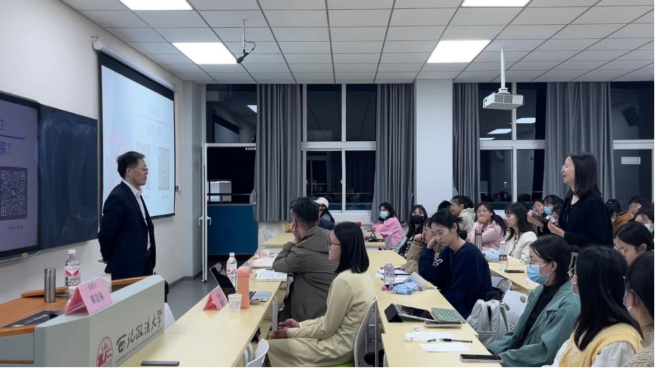 在与谈和交流环节,郭琦老师和贾同乐老师先后对蔡志保教授的精彩讲座表示感谢,分享了各自的感想和理解,并围绕施工合同无效相关问题展开与谈。之后,蔡志保教授也对同学们的积极提问做出耐心解答,并鼓励大家对实务问题进行深入思考和研究。