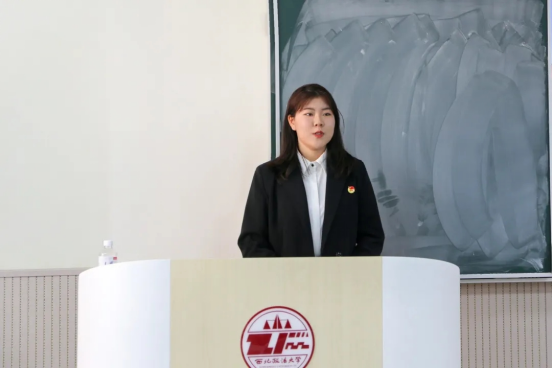 刑事法学院宣讲人郜若彤以“强国有我,让青春在奋斗中闪光”为题展开宣讲,分享了在国家发展建设进程中涌现出的先进青年事迹,倡议西法大学子在中国特色社会主义新时代应将个人发展与民族复兴、国家富强相结合,不忘初心,奋楫扬帆,为实现中华民族伟大复兴奉献青春力量。