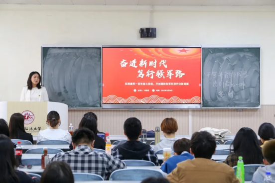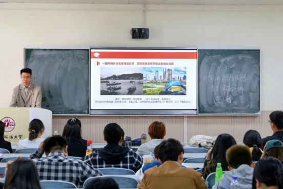 经济法学院宣讲人赵璐以坚持全面依法治国推进法治中国建设为主题,从完善以宪法为核心的中国特色社会主义法治体系、扎实推进依法行政、严格公正司法、加快建设法治社会四个角度切入,剖析了中国特色社会主义法治体系的重要内涵,号召广大青年应当以实际行动践行习近平法治思想,推动建设法治社会。