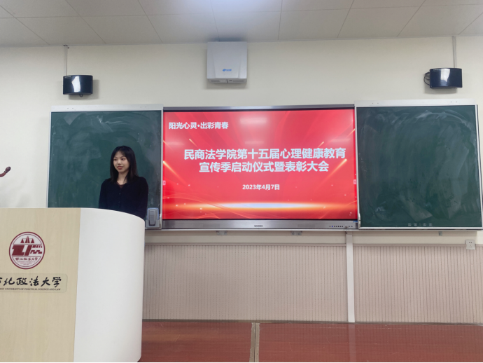 学院心理专项辅导员杨亚男老师详细介绍了我校第十五届“阳光心灵·出彩青春”心理育人宣传季活动方案。她表示,本届心理健康教育宣传季坚持以学生为本位,注重交互式沟通,将陆续开展“体育护心”健身打卡、心理公益短视频创作、心理漫画征集、“政法四季拍”摄影作品征集、“生命润心”花草种植、校园心理剧大赛、十佳心理委员评选等多项有益身心健康的心理活动,鼓励同学们积极参与。同时,杨老师宣读了《“生命·生存·生活”教育宣传月获奖名单》,表彰了在“三生”教育宣传月中表现突出的优秀学生。
