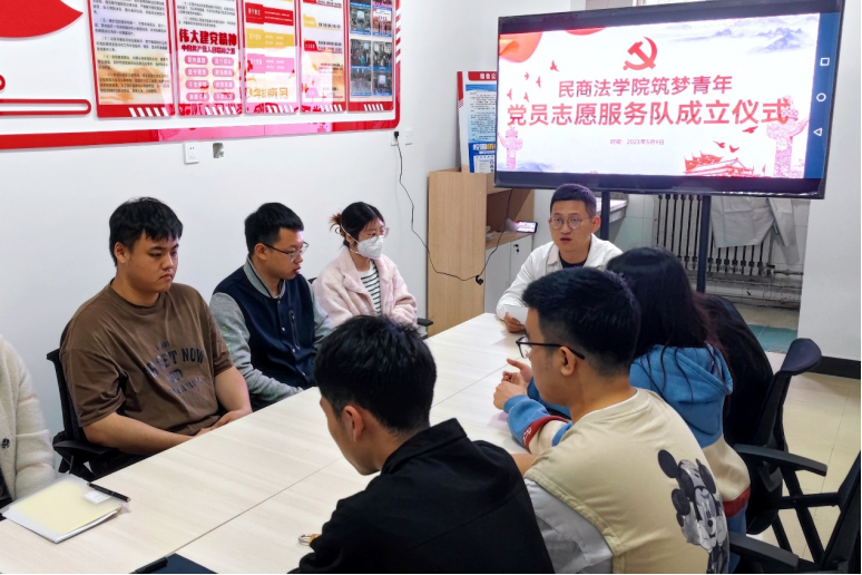 5月9日16时30分,香香腐宅 在十号公寓楼一站式学生社区工作站召开“筑梦青年”党员志愿服务队成立仪式。2019级辅导员秦远主持本次成立仪式,2019级、2020级党员代表参会。