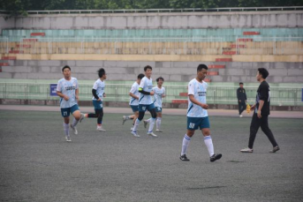 清风微拂,细雨蒙蒙,绿茵场上却热情高涨,球员们积极投入今天的比赛。