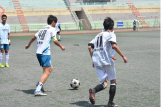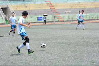 下午1时40分,下半场比赛开始。我方球员开局积极配合,多次打门。双方球员攻势猛烈,比赛进入白热化阶段。7号球员刘琦率先踢出一记角球。1号球员黄信杰以一记弧线球创造先机,无奈与进球失之交臂。终场哨声吹响,我方以0:1惜败。