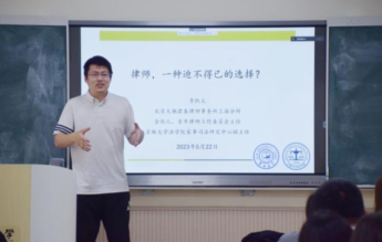 李凯文首先以自身从事律师的经历出发,提炼观察、入门、享受、思考、回归五个关键词,向大家介绍自己成为律师后的工作日常与生活节奏。针对外部视角下的对律师职业的刻板印象,李律师从不菲的收入、光鲜的生活、自由的灵魂与无限的空间四个方面对其作出详细解释与剖析,为同学们指出了律师职业的优势,即获得可观收入,快速融入社会,获取社会资源,实现人生价值。