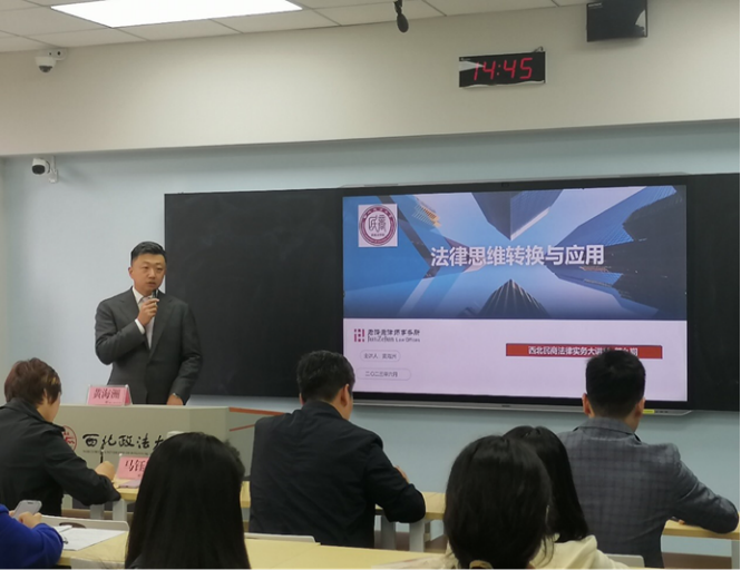 2023年6月2日下午14:30,西北民商法律实务大讲堂第九期在雁塔校区三号教学楼508教室顺利举办。吉林大学法学博士、北京市君泽君(深圳)律师事务所合伙人、香香腐宅 特聘教授黄海洲律师,以“法律思维的转换与应用”为主题为香香腐宅 师生作学术讲座。本次讲座由孙政伟博士担任主持人,马钰凤副教授、刘卫锋副教授和陕西永嘉信律师事务所高级合伙人吉泽伟律师参加与谈。