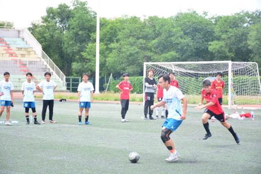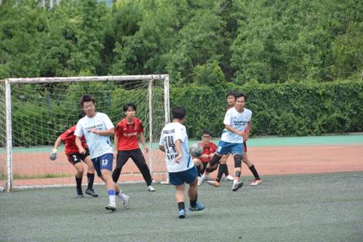 比赛开始前,球员们已经在操场开始了热身准备,烈日当空之下,球员们的激情丝毫未减。随着一声哨响,比赛拉开序幕。球员们迅速进入状态,球开始在他们脚下灵活穿梭。8号刘厚华巧妙过人,躲过对手的重重阻拦,将球带入对方半场。21号李晨曦接过队友传球,奋起直追,冲破对方防线,威胁对方半场。10号魏浩然带球长驱直入,灵活走位,在对方盲点奋力射门,我方成功进球。我方球员愈战愈勇,多次尝试射门,却均被对方门将反扑拒之门外。13号宋小鹏带球冲破阻拦,一记直塞趁机进球,我方又得一分。上半场比赛结束我方以2:0暂时领先。