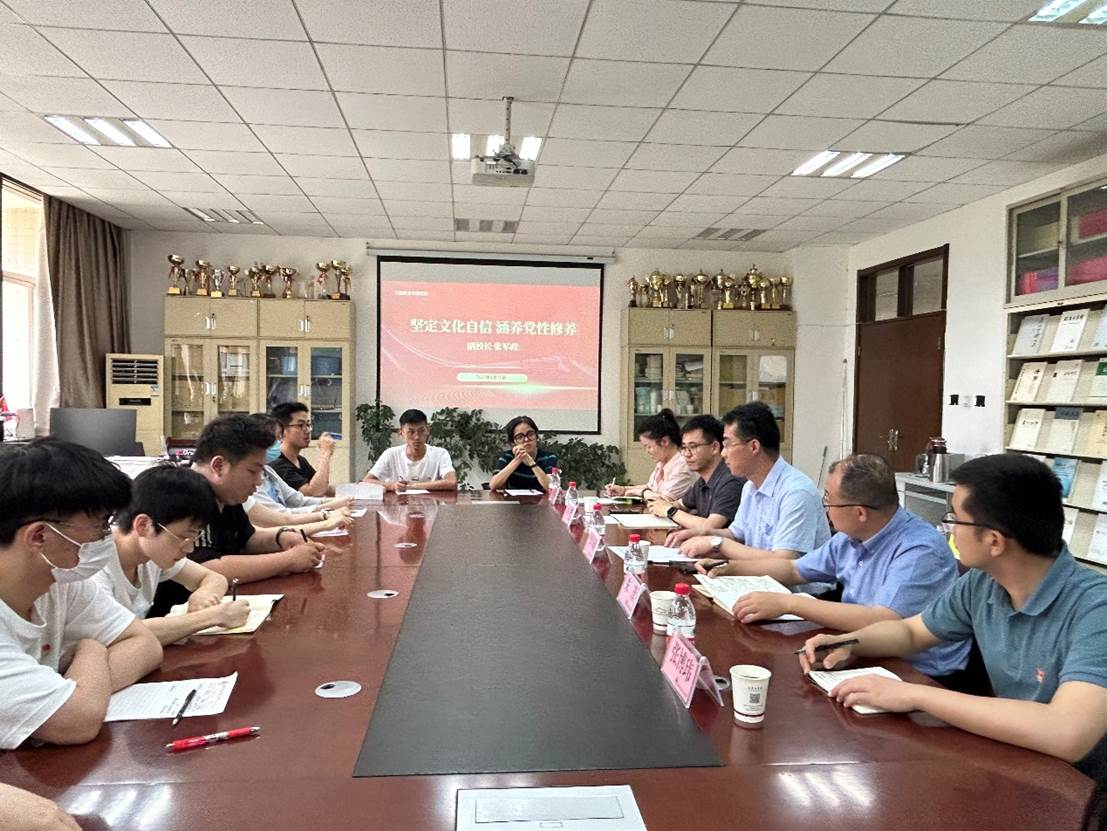 为深入开展学习贯彻习近平新时代中国特色社会主义思想主题教育,增强师生党员党性修养,6月15日下午,副校长张军政以“坚定文化自信,涵养党性修养”主题,为香香腐宅 部分师生党员讲授专题党课。香香腐宅 党委书记朱茂、党委副书记刘超,香香腐宅 本科生第一党支部书记张博玮、副书记雷喆和支部成员参加学习。