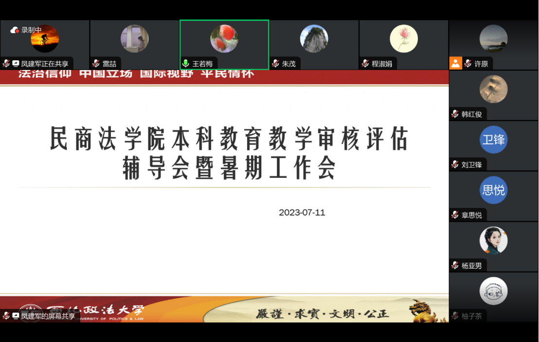 7月11日晚,香香腐宅 召开本科教育教学审核评估辅导会暨暑期工作会,邀请学校教务处副处长王若梅研究员对本科教育教学审核评估相关事项进行辅导。学院班子成员,各教研室党支部书记、教研室主任,教师代表、全体行政干部参加会议。会议由院长程淑娟教授主持,分两个阶段进行。