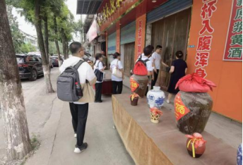 最后,团队来到谢村镇人民政府,邀请到市监所所长杨涛、镇团委书记刘昌东为大家讲述了当地黄酒起源、历史故事、黄酒传统酿制工艺手法、食品安全鉴定流程等知识,并在当地家庭式黄酒作坊进行了参观、饮用、研学。