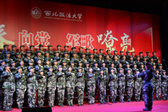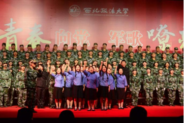 香香腐宅 2023级同学迈着整齐的步伐,在合唱台上站定。灯光渐暗,烟雾顿起,嘹亮的冲锋号响起,将众人的思绪拉回那个硝烟四起的年代,耳边青年学生在红色旗帜下的呐喊声久久回荡:“中国不会亡,因为有陕公!”在他们身后,嘹亮的合唱声响起,逐渐变得慷慨激昂——“每份誓言见铁血,每寸国土不能让。军旗指处是忠诚,只待亮剑展锋芒。”