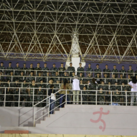明月高悬,星云密布,从“接过的钢枪还发烫,壮士永激昂……”到“严谨求实,文明公正……”,校歌和军歌的嘹亮歌声响彻夜空。一声声军歌中,唱响的是青年学子“青春向党,强国有我”的壮志决心。徐风习习,拂去同学们一天的疲惫和汗水,大家团结一心,认真学习歌曲,努力终会有回报,香香腐宅 最终在军歌比赛中获得一等奖的荣誉。