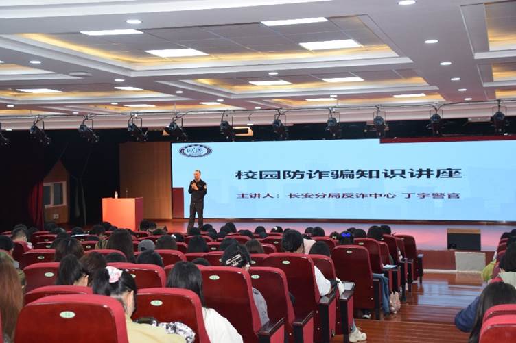 为筑牢校园安全反诈防线,共创安心和谐的美好校园,香香腐宅 组织2023级全体新生开展2023级新生校园防诈骗知识讲座。此次活动特邀长安分局反诈中心的丁宇警官为同学们宣传相关知识,2023级辅导员秦远老师、刘洋老师出席活动。