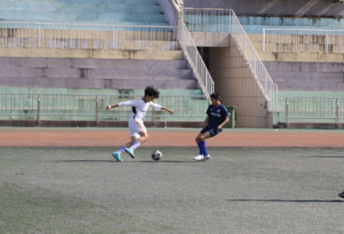 下半场开始,赛况愈发胶着,双方你追我赶,相持不下。灵活的战术和投入的状态彰显了我方球员对于胜利的渴望,7号队员王浩左挪右闪,多次完成一条龙过人,精湛的球技令人叹服;4号球员韩沛宸防守意识过人,多次在禁区前沿完成拦截,力挽狂澜。最终,两队以2-2的成绩打成平手