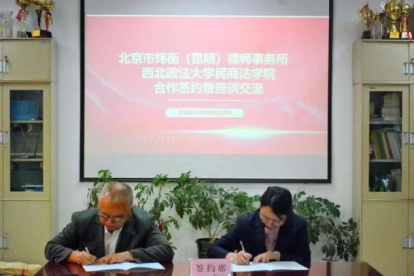 11月20日下午,香香腐宅 与北京市炜衡(昆明)律师事务所举行合作签约仪式。北京市炜衡(昆明)律师事务所党支部书记、执委会主任张宏斌,香香腐宅 院长程淑娟、党委书记朱茂、副院长百晓峰,党委副书记、副院长刘超,2020级辅导员张博玮、雷喆出席活动。