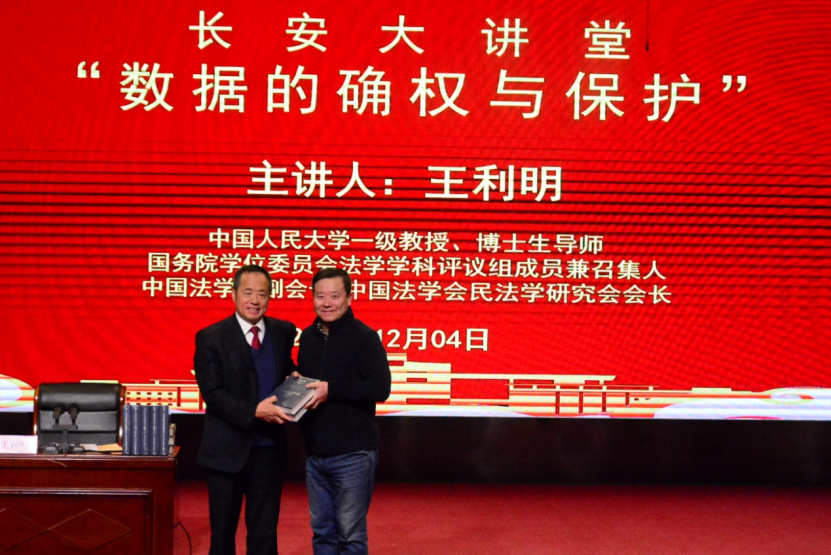 12月4日下午,中国法学会民法学研究会会长,中国人民大学一级教授、博士生导师王利明应邀为我校师生作题为“数据的确权与保护”的学术讲座。校长范九利主持讲座,副校长张荣刚参加讲座。