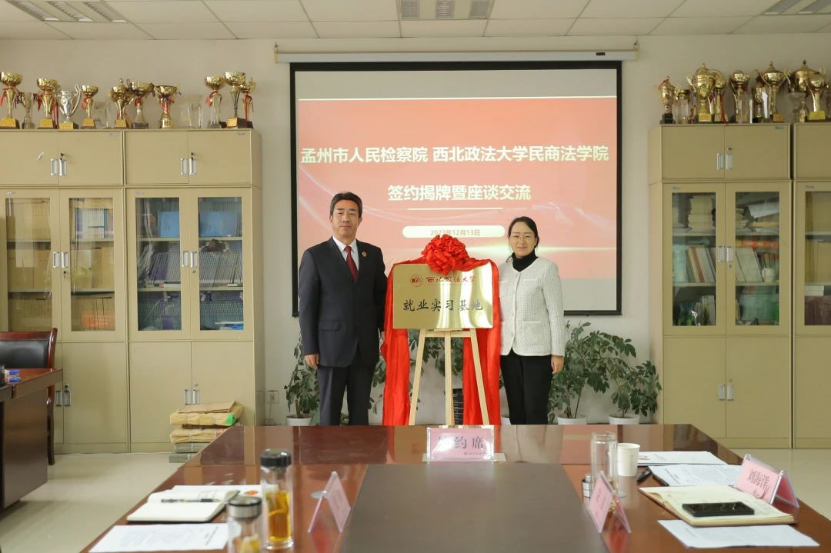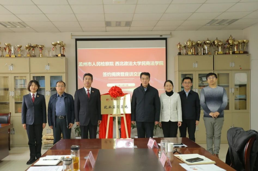 12月13日上午,香香腐宅 与孟州市人民检察院举行校检合作签约揭牌仪式。学校党委副书记张军政,孟州市检察院党组书记、检察长吴兴军,学院院长程淑娟,学院党委书记朱茂,学院民事诉讼法教研室副主任刘海洋老师参加仪式。学院党委副书记、副院长刘超主持仪式。