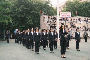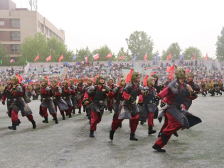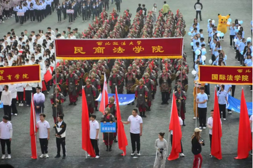 开幕式上,民商学生代表队伍与教师队伍步伐铿锵,神采奕然。炙热的太阳下,金色铠甲耀眼而轩昂,黑色工装沉静而稳重,民商人决心以拼搏释放力量,以意志放飞梦想。在大型团体操表演《复活的军团》中,身穿铠甲、手持金盾的地宫秦俑随着鼓乐有序地变换方阵,横排纵列,以肃穆无言的军团书写着一曲跨越时空的忠诚赞歌。神兵千年,风采永恒,这整齐划一的动作与复杂变换的方阵背后,凝聚着民商学子日复一日辛苦训练下的汗水,彰显着民商学院团结奋发、力争上游的精神风貌。
