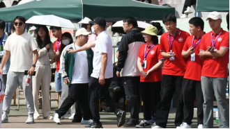 角落里,志愿者们坚守岗位,默默奉献。赛前,他们守在团体操表演队伍周围,搬运物资,协助训练;赛中,他们为运动员提供所需的物品与帮助,记录他们飒爽英姿;赛后,他们清点余下的物资,清理看台上余留的垃圾。作为运动盛会的“幕后英雄”,他们以辛勤的汗水为比赛顺利进行提供最坚实的保障,以无闻的付出助力民商谱写荣光。