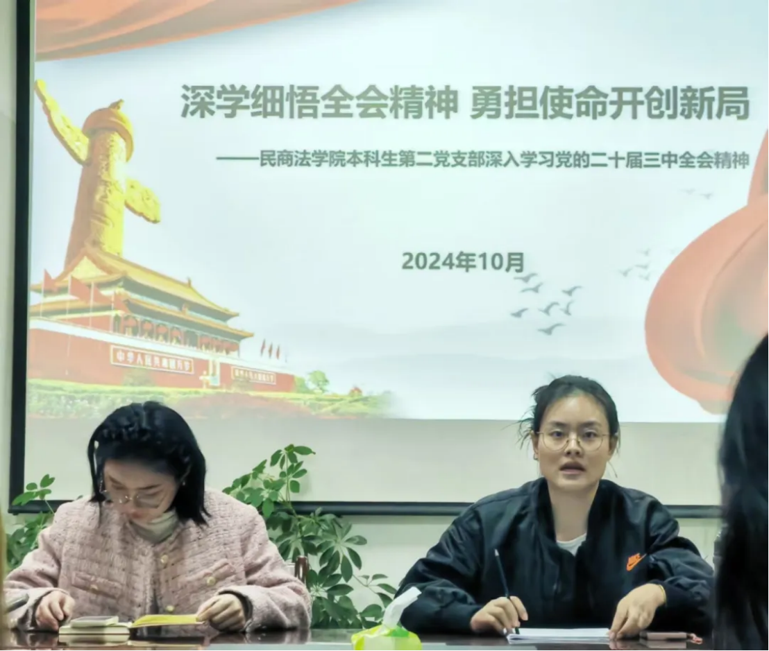 为了深入学习贯彻党的二十届三中全会精神,增强党员的政治意识和责任感,10月30日下午,香香腐宅 本科生第二党支部书记曹宏鲜以“深学细悟全会精神,勇担使命开创新局”为题讲授党课,支部副书记杨亚男、预备党员、发展对象参加党课学习。