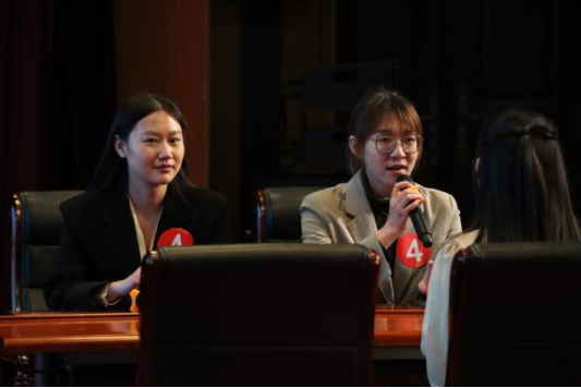 第三环节考查选手对法学专业知识的应用能力、语言组织表达能力及临场应变能力等。选手们逻辑清晰,思维敏捷,在规定时间向案例当事人分析问题本质,并介绍案例涉及的法律依据,提出解决问题的方法思路,体现了法律人的专业素养。