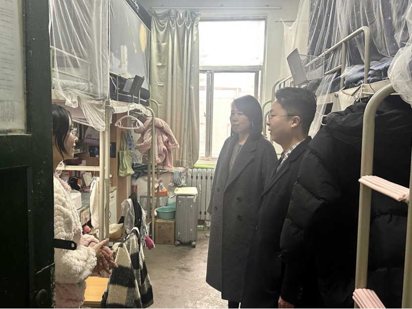 走访过程中,上官亚敏、丁磊对宿舍卫生清洁、用电安全等方面进行检查,并叮嘱学院保持公共卫生、增强安全意识、营造和谐健康的宿舍氛围。随后,上官亚敏与学生代表进行交流,详细了解学生的学业规划与就业情况,并针对学生的困惑需求,给予了切实可行的意见建议。