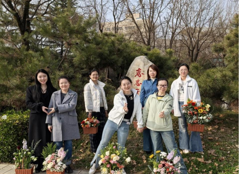 在“芳华绽放花香满院”主题插花活动中,学院20余位教职工在花香与创意中感受节日的温馨与美好,玫瑰、康乃馨、洋桔梗、相思果、满天星等各色花材错落摆放、花香四溢,老师们以饱满的热情沉浸在插花创作中,学院资料室内欢声笑语不断,大家互相交流创作灵感,老师们心灵手巧地将各种花材创作出各有特色的花艺作品;插花活动结束后,老师们在校园里打卡拍照,用手机相机记录下美好瞬间,她们带着春日的生机盎然,成为校园里最亮丽的风景线。