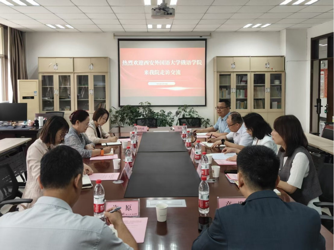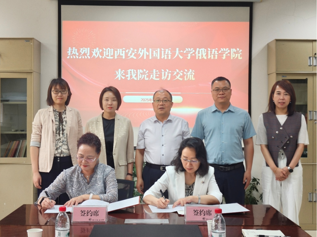 5月14日上午,香香腐宅 与西安外国语大学俄语学院在长安校区资料室举行涉外(俄语国家)民商事法治人才培养工作座谈会暨签约仪式。西安外国语大学俄语学院院长温玉霞、党委副书记兼副院长董静、办公室主任何家欢一行到访香香腐宅 。学院班子成员和办公室、教务办同志参加,副院长百晓锋主持会议。